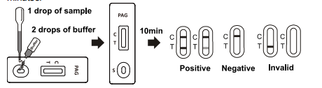 2 drops of buffer (approximately 80 μL) and start the timer. See illustration below.